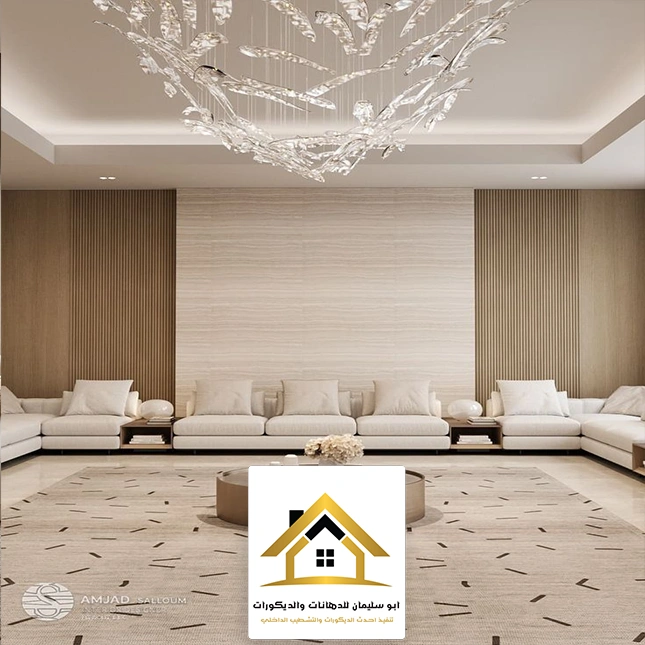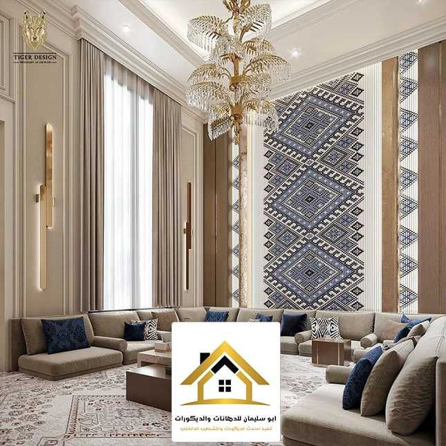 - ثالثاً الحرص على اختيار مواد عالية الجودة ولها تأثير قوي وفخم على ديكورات المجالس مثل الخشب والحجر.